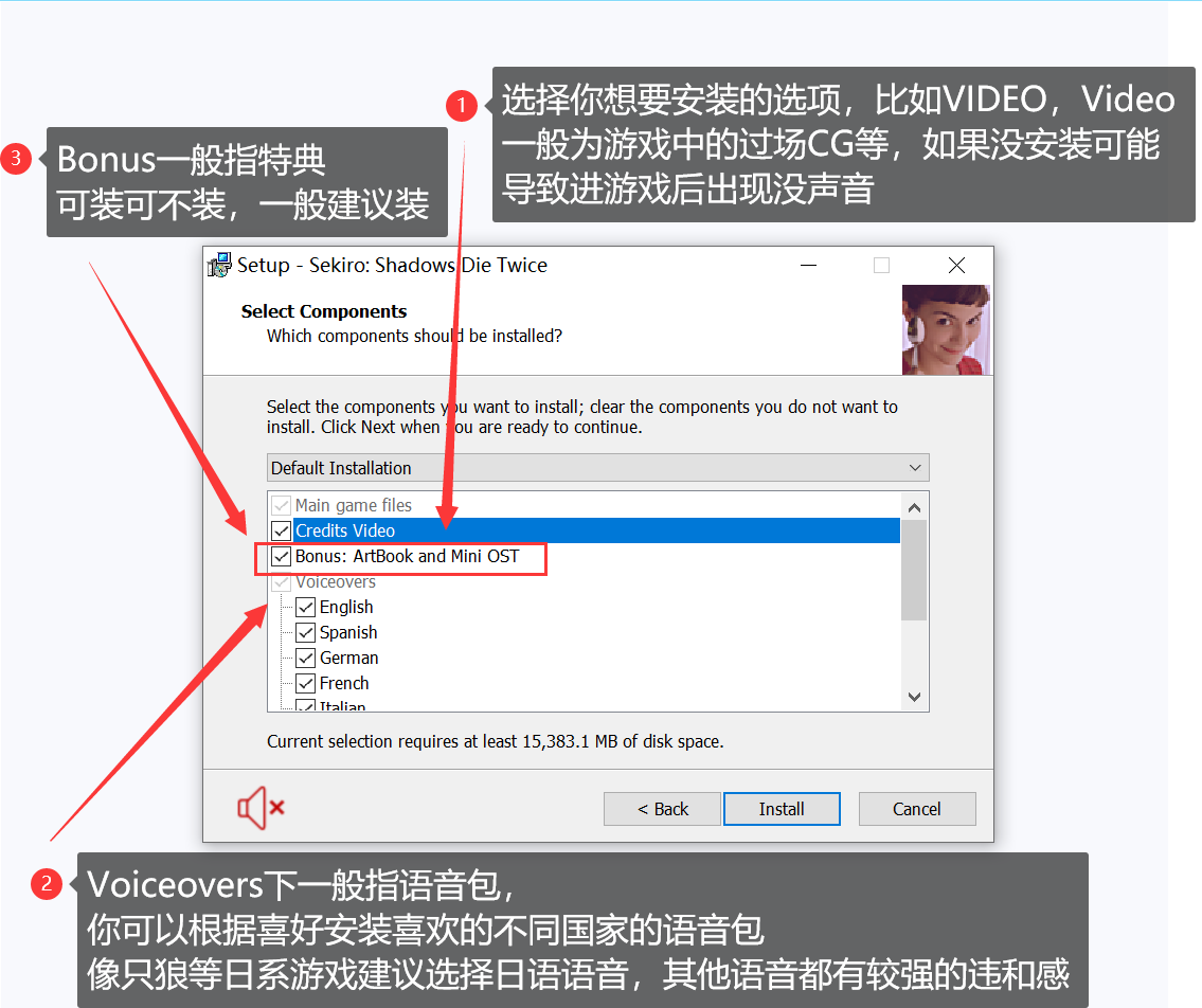 第五步:根据需求安装语音包,CG动画等等