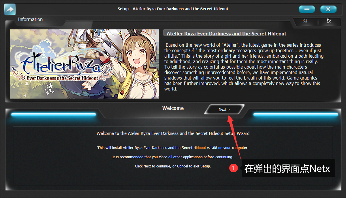 第三步:介绍界面,没有出现需要你点击的,直接点NETX