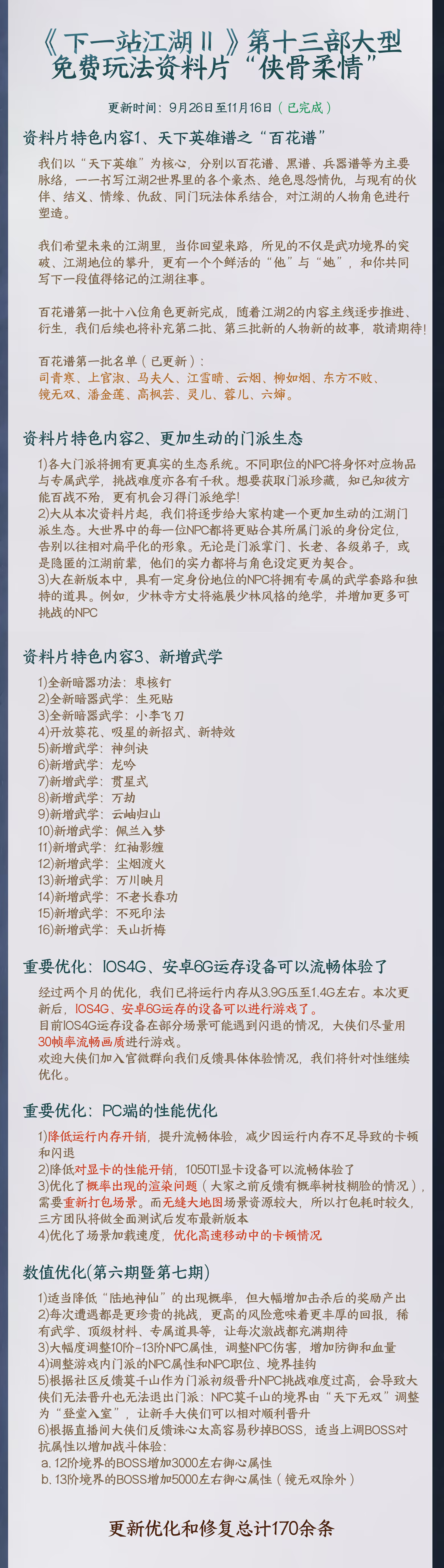 (“创新工坊”现已推出,当前已更新13个免费玩法资料片)《下一站江湖Ⅱ》是白玉京工作室研发的第二款3D单机武侠游戏,是一款包含了沙盒式的剧情主角养成、无缝大地图任意采集建造模拟经营、骑砍Like式门派霸图玩法的开放世界游戏,无内购、可离网游玩!