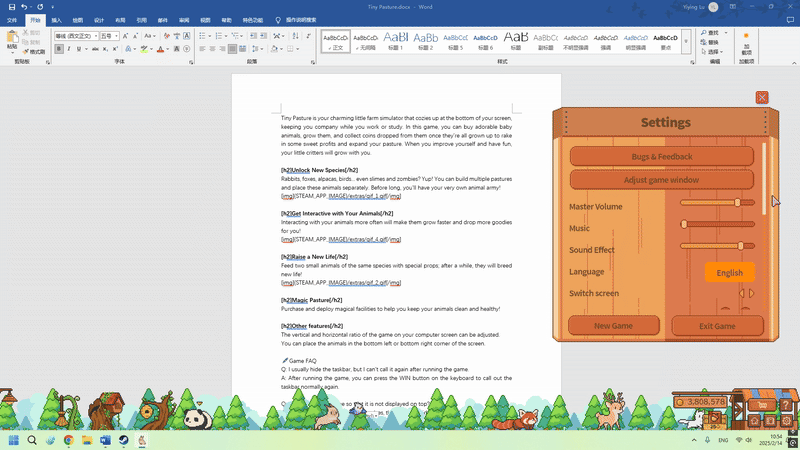 Steam商城:https://store.steampowered.com/app/3167550/动物栏:桌面牧场/