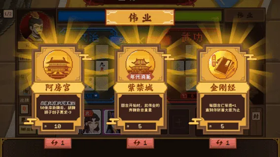 《皇帝游戏》是一款将皇帝扮演与卡牌构筑相结合的roguelike游戏,在这款游戏中,在这里,您将穿越时空化身千古帝王,亲自执掌乾坤,打造您独一无二的能臣良将班底,亲自排兵布阵,合纵连横。运筹帷幄之中,决胜千里之外。是宵衣旰食开创盛世,还是酒池肉林沦为昏君,都在您的一念之间!