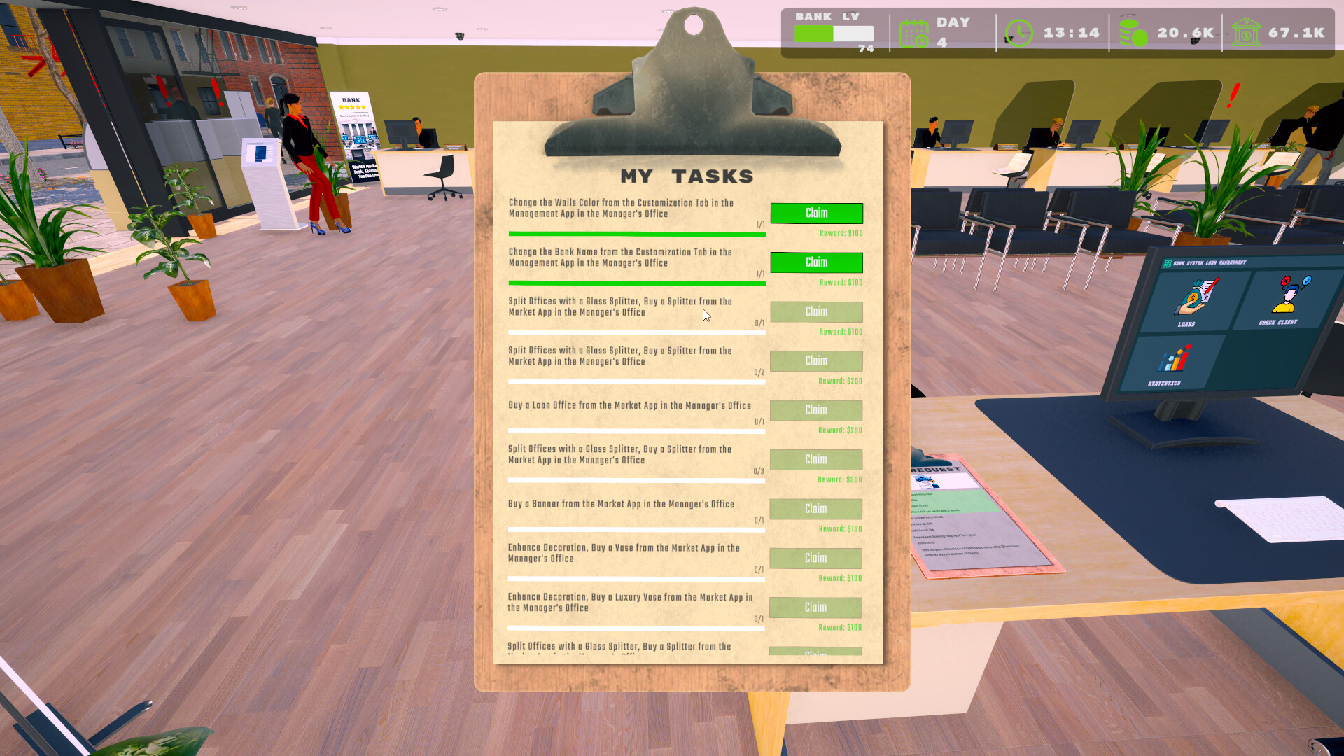 银行模拟器是一款真实的银行管理游戏,在这里您可以建立、管理和扩展您的金融帝国。招聘员工、审批贷款、投资债券、处理客户账户、开展营销活动,同时应对各种金融挑战。