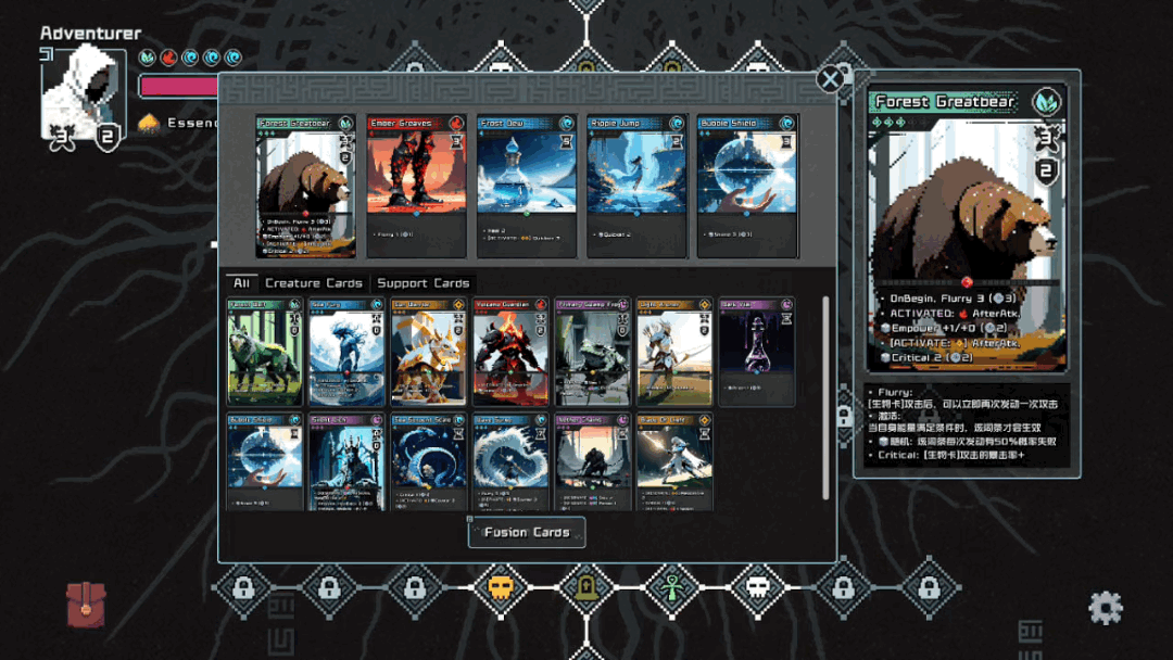 这是一款极致且硬核的牌组构建 Roguelite 游戏。操作简单,自动战斗,一切都围绕构筑策略!海量卡牌,结合5种元素能量,搭配能力各异的符文,带来超乎想象的构筑空间与策略变化。无数的地下城,丰富的遭遇事件,形态各异的敌人等待你的探索与挑战。