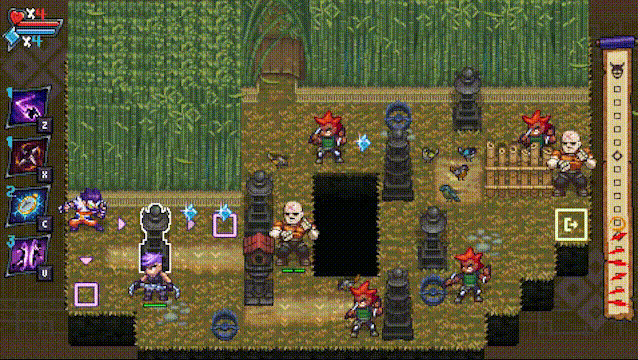 《岚:外传》是一款回合制动作游戏,融合了策略与冲刺斩击玩法。主角“岚”是来自Pocket Bravery宇宙的忍者,他受雇于昔日的师父“狼人”,接受任务前往日本,击败忍者与“猎群”士兵,夺回三件强大的东方遗物。