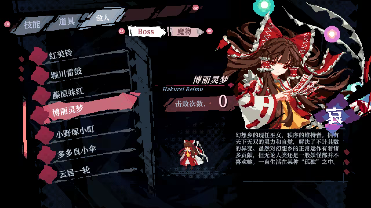 这是一款爽快的ACT横版过关游戏,以东方Project的人物“秦心”为主角,在幻想乡的舞台尽情探索和击败敌人,并且带有轻度的Rogue-lite要素。